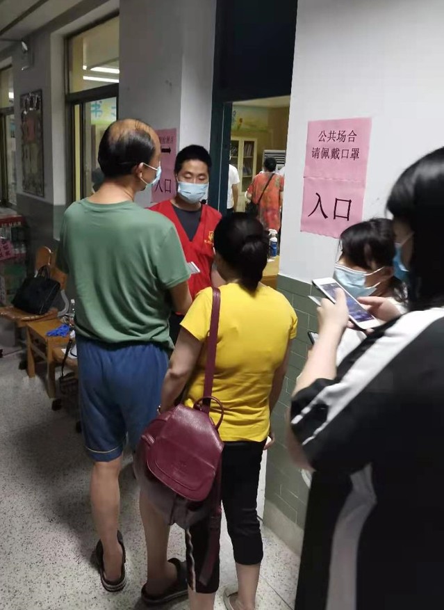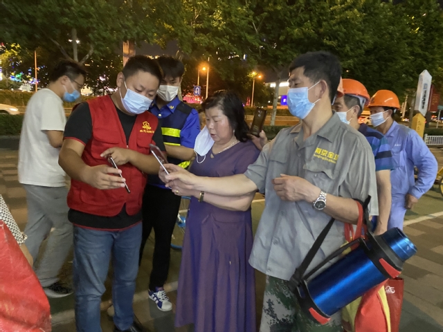 會后,集團迅速組織黨員干部組成志愿者隊伍,聯(lián)系建鄴區(qū)認領疫情防控志愿工作,趕赴多個社區(qū)協(xié)助防疫一線的核酸檢測工作。集團志愿者隊伍每組都由集團部室、公司負責人帶隊,進入工作現(xiàn)場后,他們迅速熟悉掌握工作要求,立即上崗投入志愿服務。引導前來進行檢測的市民嚴守疫情防控要求有序排隊進場,安撫待檢人員相互配合支持,指導幫助登記掃碼加快工作速度,為老人和困難市民提供方便服務……在他們與其他志愿者的共同努力下,這幾個檢測點都秩序井然,有效推進了檢測速度,減少了市民等待時間。志愿者們把保障核酸檢測有序高效推進作為此時踐行初心使命的擔當,忘記了炎熱夏夜忙碌的一身汗水,忘記了蚊蟲繞身不停的叮咬,為筑起群眾生命健康防線獻出了一份力量。
