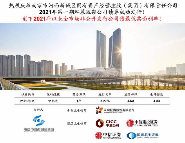 此次發(fā)行由天風(fēng)證券股份有限公司牽頭,四家證券公司聯(lián)席組成承銷團(tuán),河西集團(tuán)財(cái)務(wù)管理部憑借多年的發(fā)債經(jīng)驗(yàn),參與市場(chǎng)調(diào)研,拓展了工作思路,調(diào)整債務(wù)結(jié)構(gòu)。