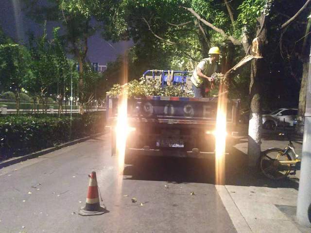 綠化養(yǎng)護(hù)隊伍,進(jìn)行24小時值班巡查,對出現(xiàn)的倒伏樹木、斷枝和破損的市政設(shè)施,及時進(jìn)行消險處理。本次防汛過程中共出動巡查及搶險人員90人次,投入車輛30臺次,清除危亭1處,險樹5處、斷枝4處。不僅保證養(yǎng)護(hù)區(qū)域綠化植物安全度汛,更保障了居民安全出行。