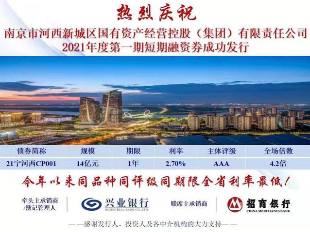 南京市河西新城區(qū)國(guó)有資產(chǎn)經(jīng)營(yíng)控股(集團(tuán))有限責(zé)任公司(以下簡(jiǎn)稱(chēng)“河西集團(tuán)”)成功發(fā)行2021年度第一期短期融資債券。