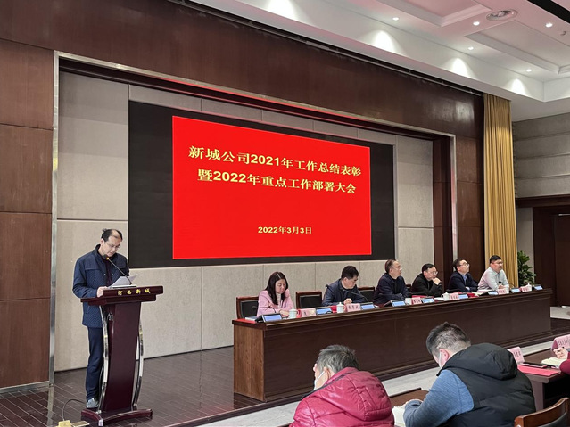 3月3日下午,新城公司召開2021年工作總結(jié)表彰暨2022年重點工作部署大會,河西集團黨委副書記、董事繆昌根,新城公司領(lǐng)導(dǎo)班子成員及全體員工參加。
