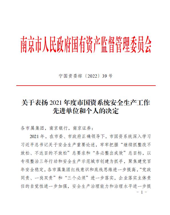 近日,河西集團獲得南京市安委會2021年度安全生產(chǎn)工作優(yōu)秀單位、南京市國資系統(tǒng)2021年度安全生產(chǎn)工作先進單位和市國資系統(tǒng)安全生產(chǎn)工作創(chuàng)新獎。王銘周、王凱、崔洪暢、谷影偉、馬紫琳、史偉強等6人被評為2021年度南京市國資系統(tǒng)安全生產(chǎn)先進個人。