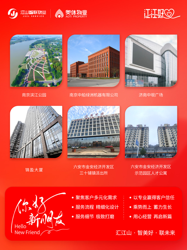 聚焦客戶多元化需求,用專業(yè)贏得客戶信任。江山智聯(lián)物業(yè)將持續(xù)精細(xì)化設(shè)計(jì)服務(wù)流程、極致打磨服務(wù)細(xì)節(jié),乘勢(shì)向上、用心經(jīng)營(yíng),新年再啟新篇。