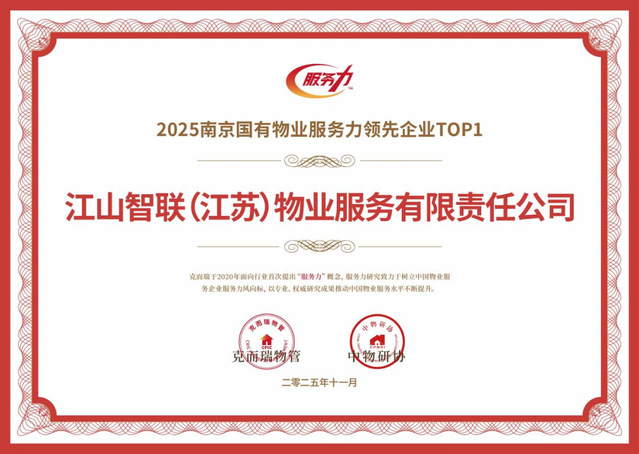 河西集團(tuán)江山智聯(lián)物業(yè)憑借卓越的服務(wù)品質(zhì)與前瞻的戰(zhàn)略布局,一舉斬獲2025南京國(guó)有物業(yè)服務(wù)力領(lǐng)先企業(yè)TOP1、2025江蘇省服務(wù)力市場(chǎng)運(yùn)營(yíng)領(lǐng)先企業(yè)TOP3、2025物業(yè)服務(wù)力南京十強(qiáng)、2025物業(yè)服務(wù)力江蘇省三十強(qiáng)、2025華東區(qū)域物業(yè)服務(wù)力百?gòu)?qiáng)企業(yè)、五項(xiàng)行業(yè)重磅榮譽(yù)。