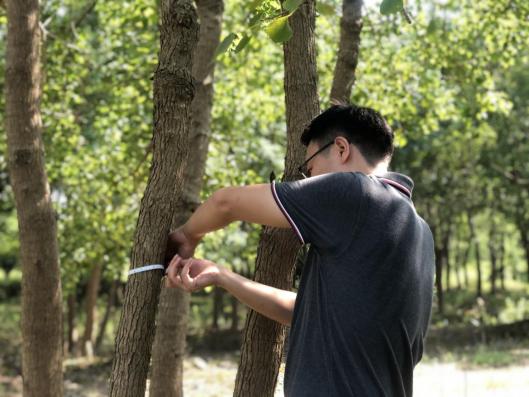 近期“秋老虎”發(fā)威,炎炎烈日、驕陽似火,林中蚊蟲叮咬,地面起伏、時(shí)有溝壑。但沒有一個(gè)人叫苦喊累,認(rèn)真的用樹尺測(cè)量每一棵苗木,并詳細(xì)記錄。至太陽西下,大家用腳丈量了500多畝田地,測(cè)量了10000余株苗木?!巴陜善诘拿缒颈P點(diǎn),我要盤四五天才能盤點(diǎn)完,現(xiàn)在有大家的幫忙,不到一天就完成了,工作效率大大提高了?!泵缙载?fù)責(zé)人高興地說。