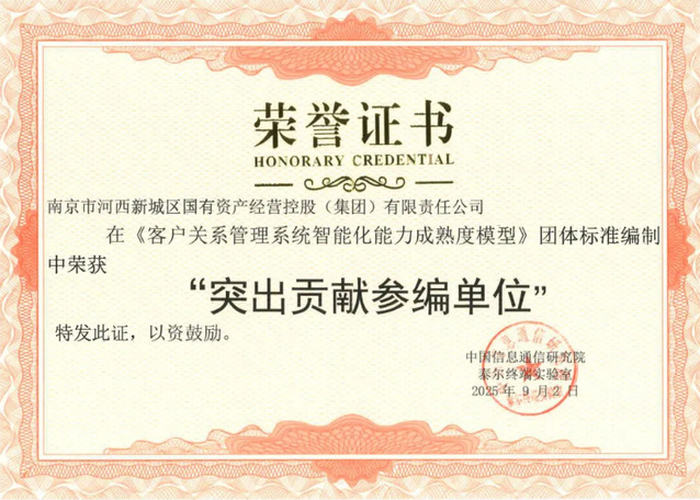 2025年9月,中國(guó)信息通信研究院召開(kāi)《面向企業(yè)用戶的客戶關(guān)系管理系統(tǒng)智能化能力成熟度模型》團(tuán)體標(biāo)準(zhǔn)終審研討會(huì),作為該領(lǐng)域的核心參編單位與重要實(shí)踐者,河西集團(tuán)榮獲“突出貢獻(xiàn)參編單位”。