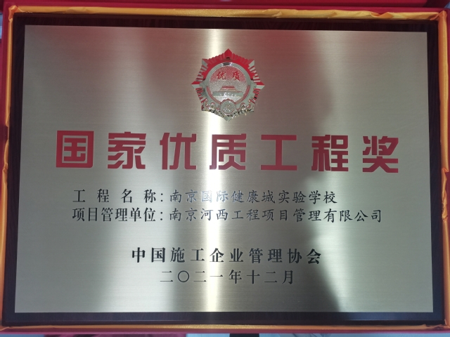 近期,河西集團新城公司所屬南京河西工程項目管理有限公司代建的南京國際健康城實驗學校項目項目喜獲“2020-2021年國家優(yōu)質工程獎”。