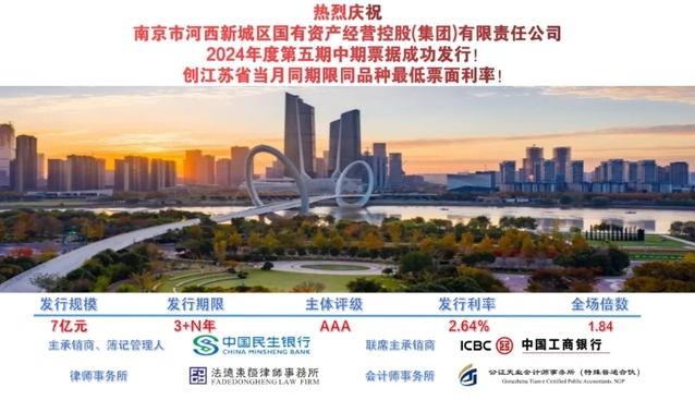 近期債券市場波動較大,債券發(fā)行充滿不確定性,市場已有多筆債券取消發(fā)行。集團(tuán)財(cái)務(wù)管理部頂住市場壓力,多次與承銷機(jī)構(gòu)、投資者及合作金融機(jī)構(gòu)召開線上線下會議,研究發(fā)行策略,調(diào)整發(fā)行方案,最終成功發(fā)行24寧河西PPN001,24寧河西MTN004、24寧河西MTN005(永續(xù)中票)三筆債券,募集資金22億元,平均融資成本2.56%,低于最新一年期LPR利率54BP,更進(jìn)一步優(yōu)化了集團(tuán)債務(wù)期限結(jié)構(gòu)和品種結(jié)構(gòu),充分體現(xiàn)出集團(tuán)對融資品種的靈活運(yùn)用。